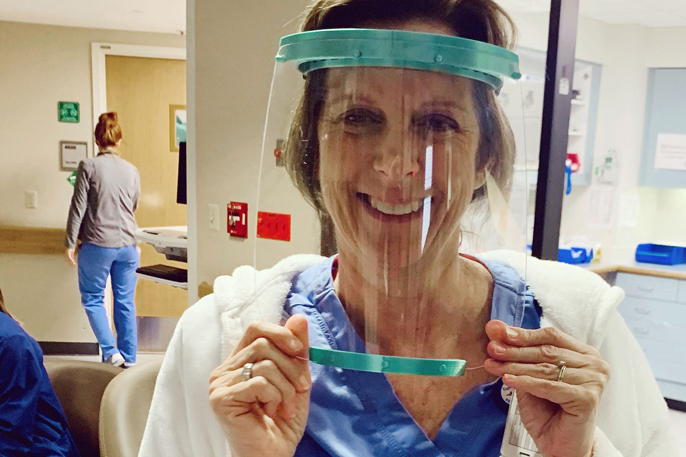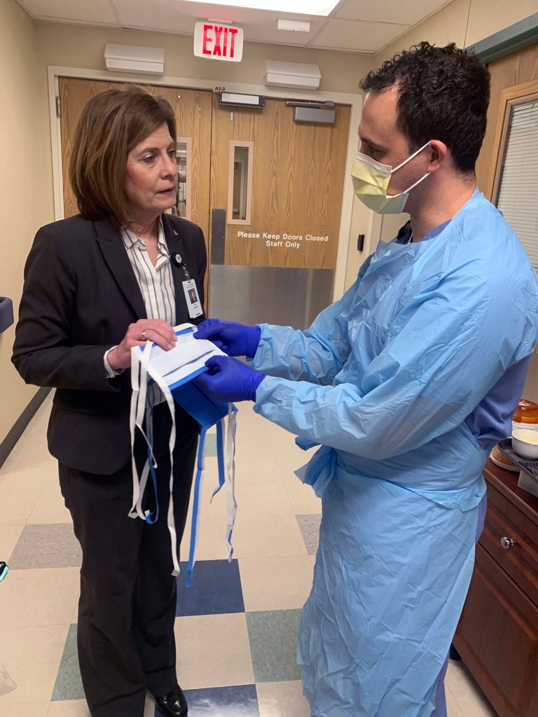 Another idea from staffers was to recycle what’s known as blue wrap, a polypropylene material used to wrap surgical instruments before sterilization, into filters for cloth masks, said the hospital system’s infection prevention and control director, Kären Bally.
