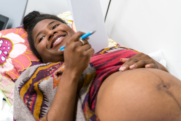 Smith, 23, had just learned she was pregnant when she heard about the group visits from a nurse midwife at the Eisner clinic. At first, she worried about discussing her life or exposing her belly in a group of strangers. But she said her boyfriend wasn’t thrilled about becoming a dad and she feared going through the experience on her own.