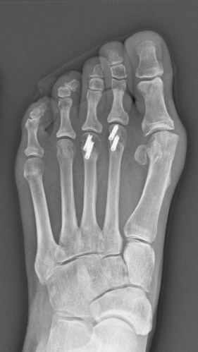 Medical Treatment: Young underwent two operations on the same day in June 2017. One surgeon addressed an injury in Young’s shoulder, caused by arthritis and overuse. A second surgeon performed several procedures on her foot, including removing a bone spur. To better align Young’s middle toes, the doctor removed a slice of bone from the center of each toe, and then reconnected the two ends with surgical screws made by Arthrex, a medical device manufacturer based in Naples, Fla.