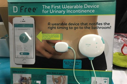Another problem: You can’t always predict when you need to go to the bathroom. DFree, a sensor worn a half-inch above the pubis bone, predicts when an individual will have to urinate, giving the wearer a chance to gauge how long they can be away from a toilet.