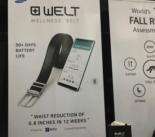 Detecting falls, now a feature of the Apple Watch, is showing up in other devices. Like in this belt, which also can alert you to weight gain as it senses the belt getting tighter. (Yeah, like old-fashioned belts do.) The Welt smart belt, developed with seed money from Samsung, also monitors the time you spend sitting and the number of steps taken. Connected to a smartphone app (naturally), Welt suggests when a user should stand or change their eating habits and will also send a customized alert after a fall.