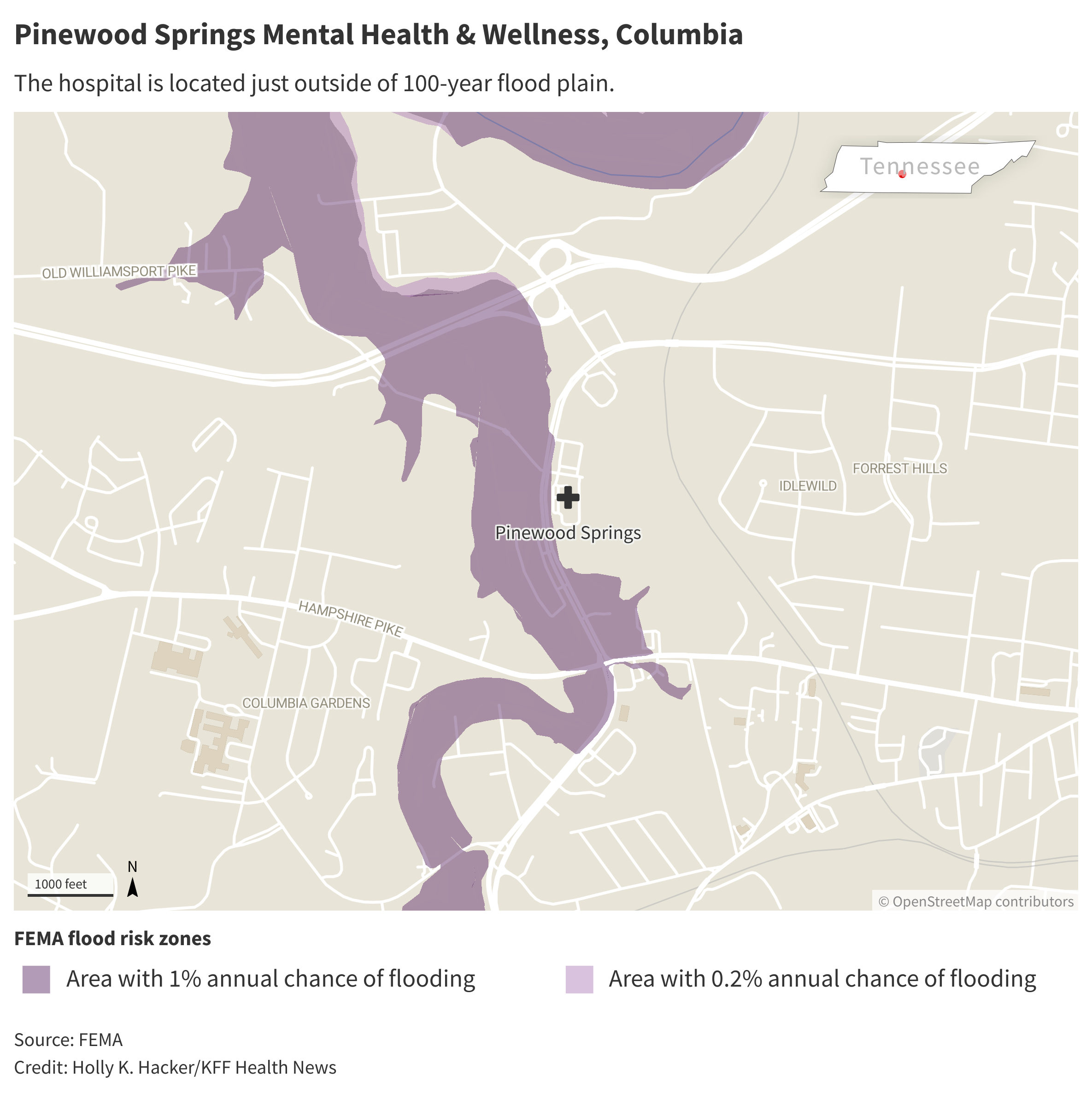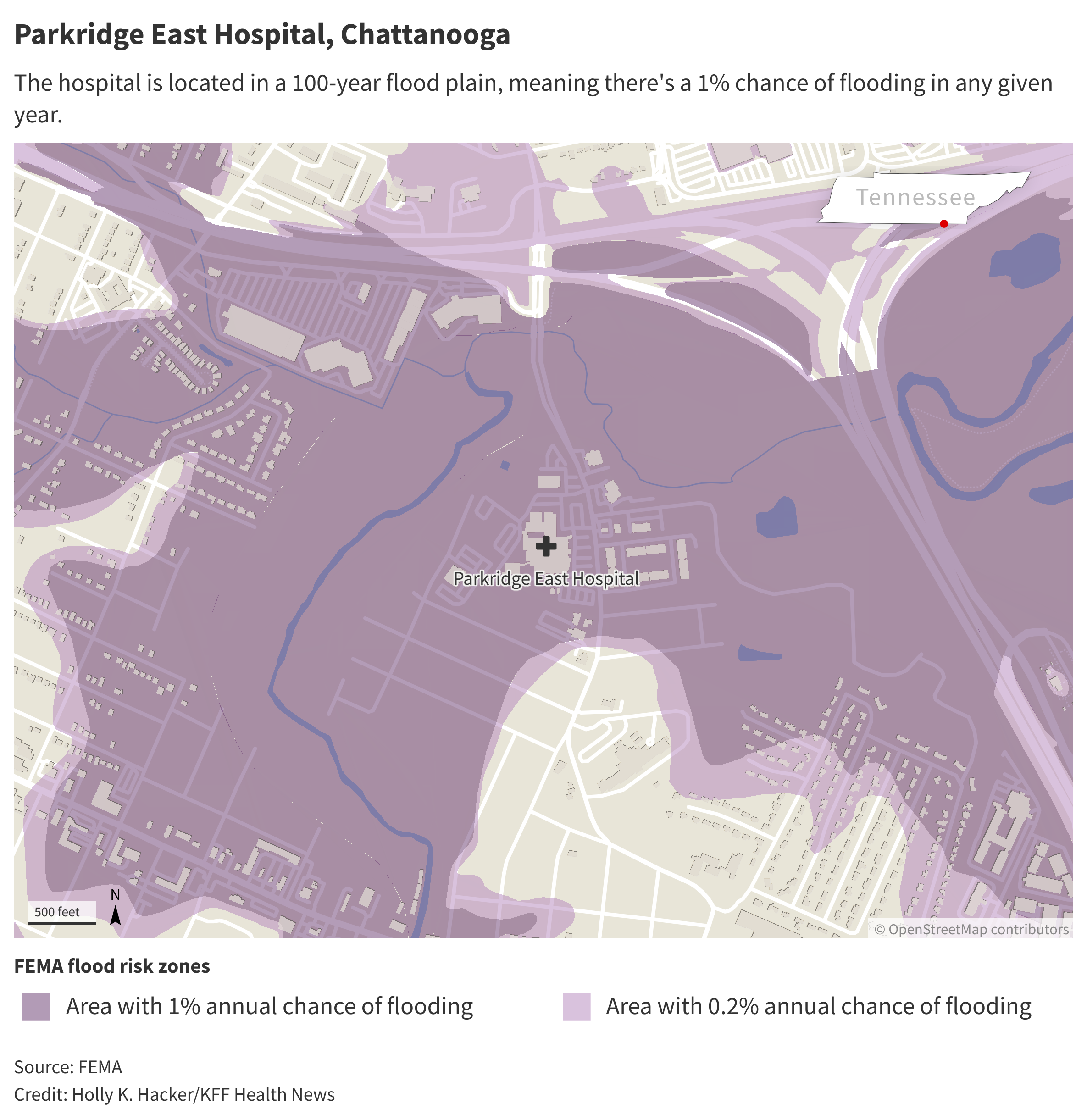 The Biden administration finalized a rule this year designed to make the construction of such projects that receive funding from the Federal Emergency Management Agency more resilient to flooding. But a review by KFF Health News identified about 20 other Tennessee hospitals already built in, or near, flood plains.