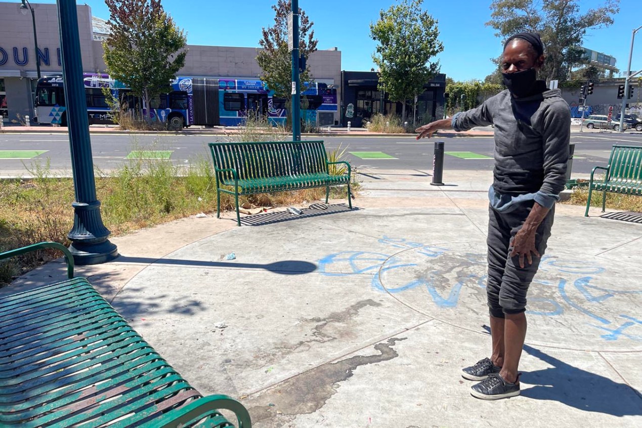OAKLAND, Calif. — Living unmedicated with schizophrenia and bipolar disorder, Eugenia Hunter has a hard time recalling how long she’s been staying in the tent she calls home at the bustling intersection of San Pablo Avenue and Martin Luther King Jr. Way in Oakland’s hip Uptown neighborhood. Craft coffee shops and weed dispensaries are plentiful here and one-bedroom apartments push $3,000 per month.