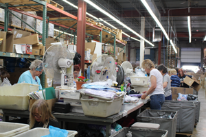 AmeriMark employees sort through return orders on the processing floor. (Photo by Sarah Jane Tribble / WCPN)