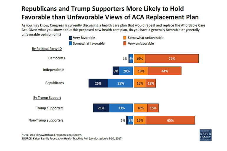 The poll of 1,187 adults was conducted July 5 – 10, about a week after the Congressional Budget Office issued its report on the GOP draft legislation. The margin of error was plus or minus 3 points.