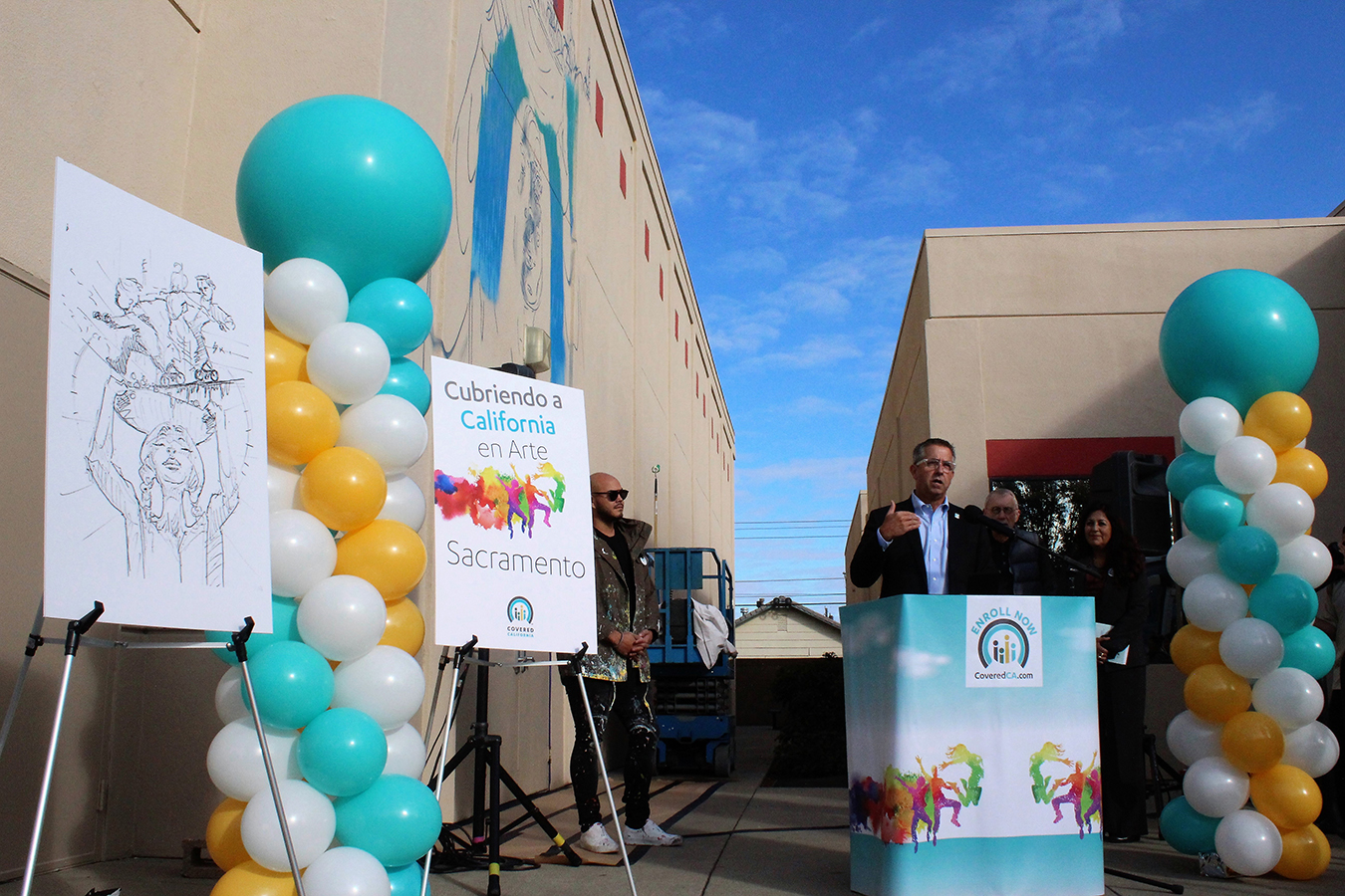 This year, as in some previous years, Lee paraded across the state in a colorful charter bus promoting the start of open enrollment. He touted the 12 new murals, and echoed the primary message of