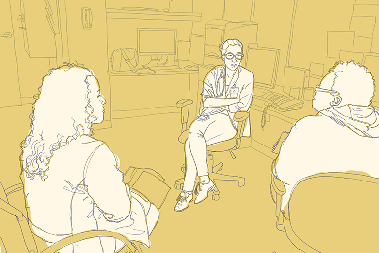No one wants to be sick, he says, but sometimes the whole health care system can be intimidating. He’ll go with patients to their appointments, check in with some of them regularly on the phone, and he’ll even take frantic calls at 2 a.m. about whether they should go to the emergency room or not.