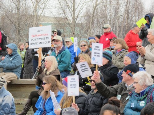 But surveys show 65 percent of Alaskans favor Medicaid expansion. Supporters testified in large numbers at legislative committee hearings and attended rallies. In one, organized by an interfaith church group, Lutheran pastor Julia Seymour turned the crowd into a choir. She led them in singing, “Medicaid expansion, I’m going to let it shine” to the tune of “This Little Light Of Mine.”
