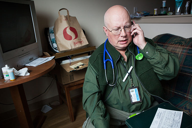 The team connects clients with medical care, paid for through Medicaid or hospital charity, and then makes sure they follow up. They help patients evaluate complicated treatment options, and, when the time comes, they may be with them when they die.