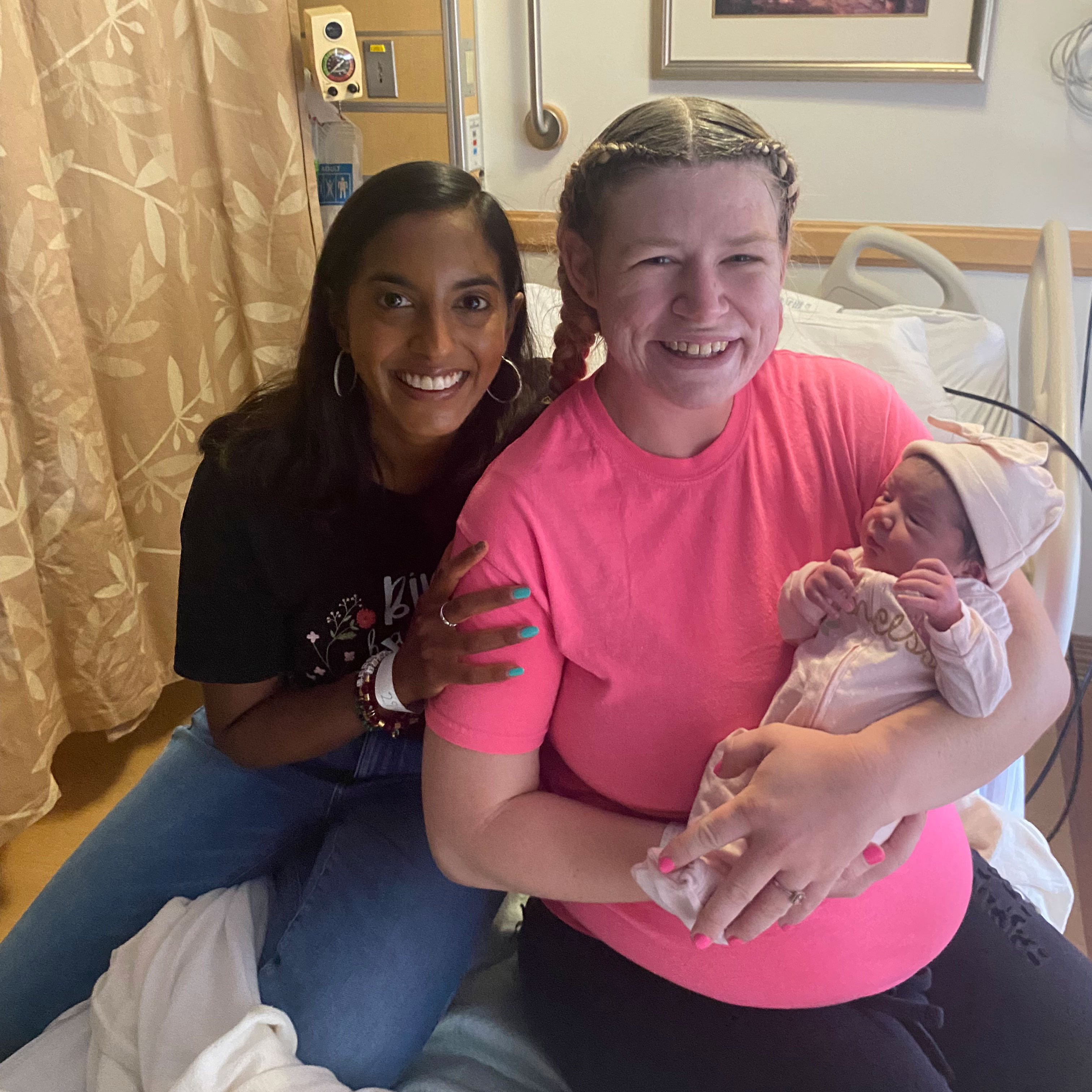 During Bloomer’s pregnancy, Kalyan-Masih assisted with strategies such as mapping a birth plan and coaching Bloomer on breathing techniques to ease her anxiety.