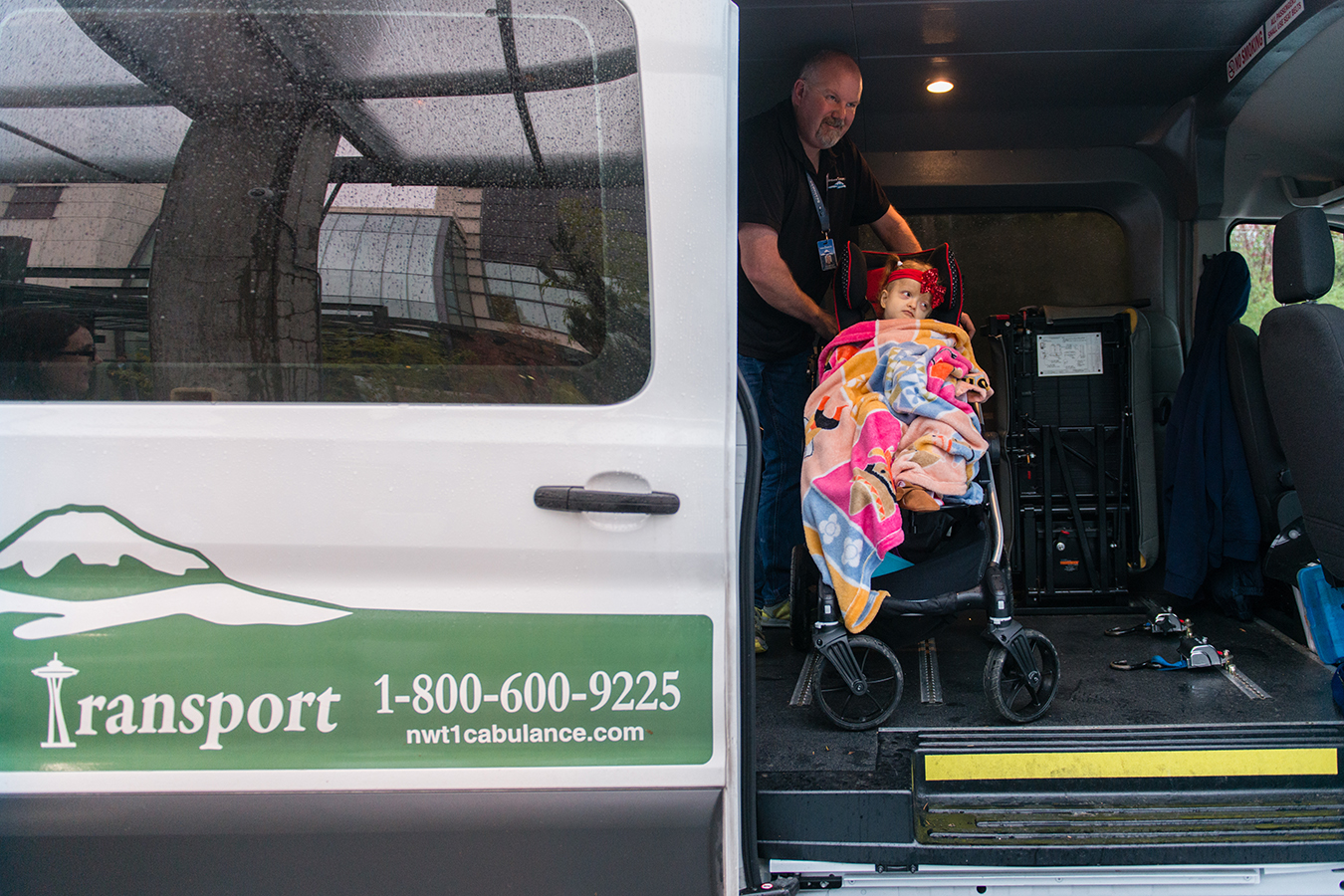 In Maddie Holt’s case, she was shuttled to Seattle Children’s on a rainy Tuesday morning in a medical van driven by Donavan Dunn, a 47-year-old former big-rig trucker. He works for Northwest Transport, one of several regional brokers that manage NEMT services for Washington state.