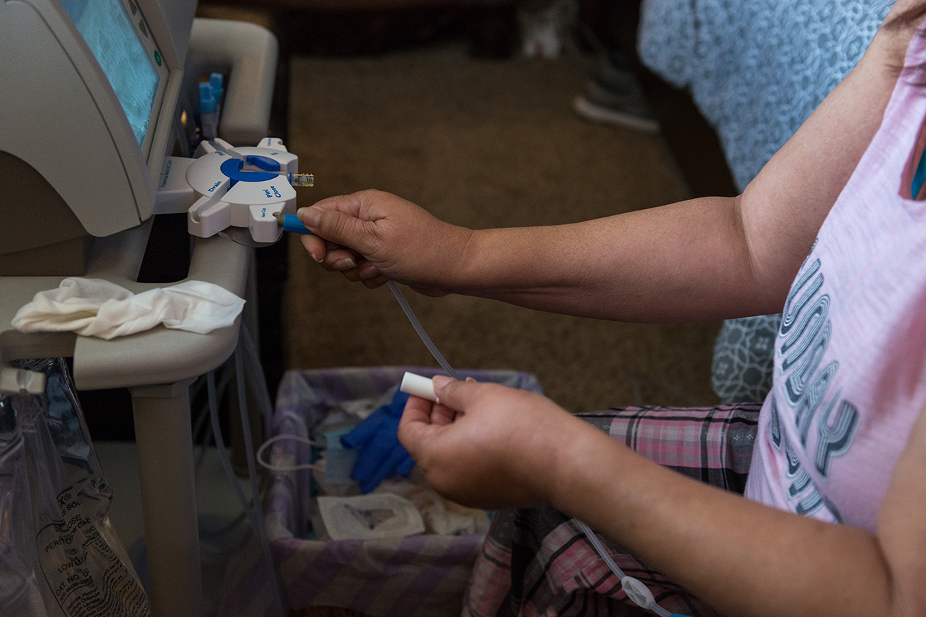 Duenas is awaiting a kidney transplant. Until she finds a match, she’ll be administering her own peritoneal dialysis at home.