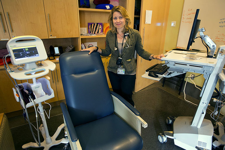SPOT nurse April Donahue said some patients in the room appear so sedated that they don’t respond when she speaks loudly in their ear or raps on their sternum. But, she says, some of those people “have rock-solid vital signs, better than mine.” So, she said, “What you see subjectively looking at someone and what their vital signs are don’t always match up.”