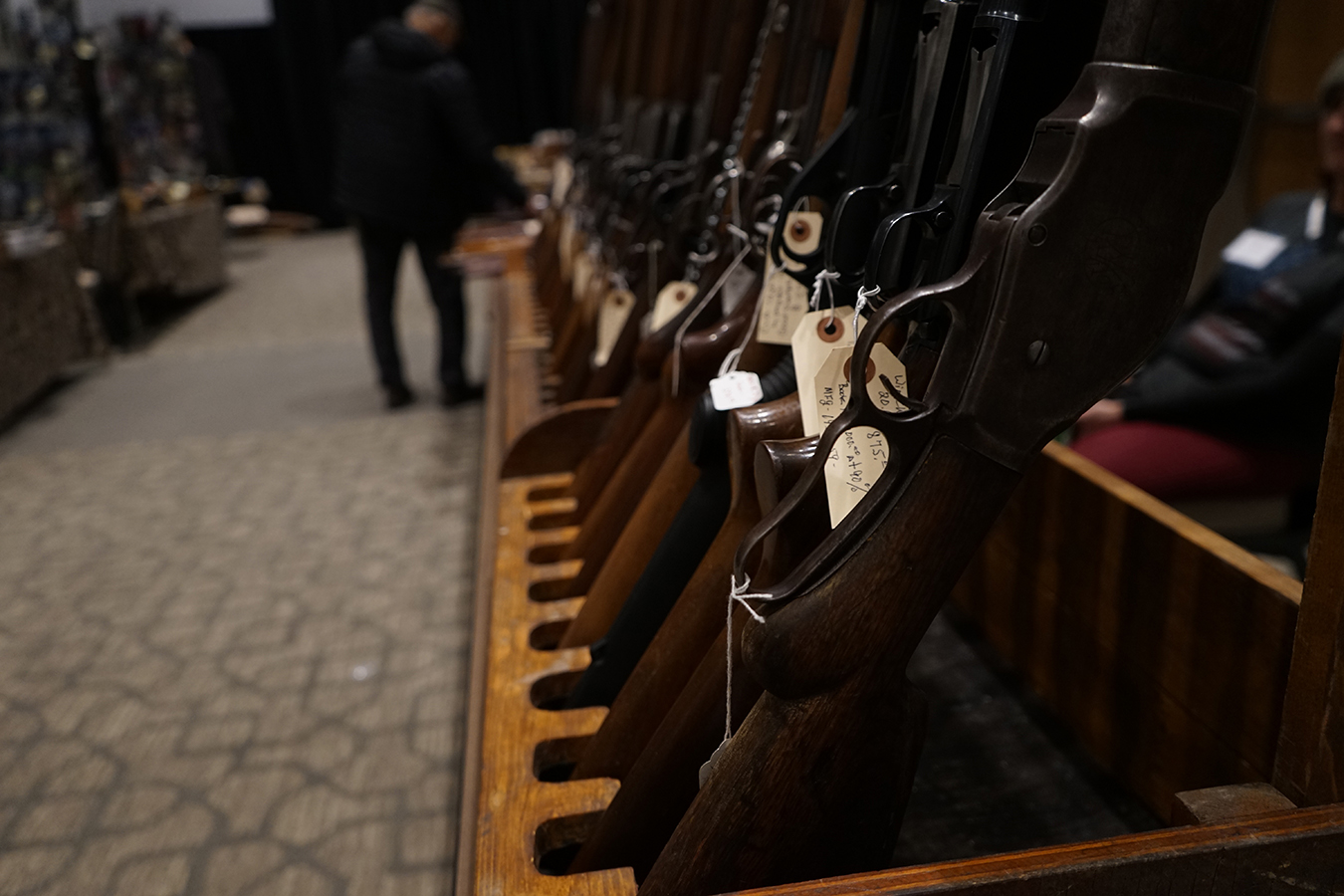 Amid a maze of tables displaying brightly varnished rifle stocks, shotguns and the occasional AR-15 assault-style rifle, they waited, ready to talk with show attendees.