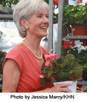 At the garden center of the store, Sebelius bought a geranium, which if nothing else complemented her coral dress.