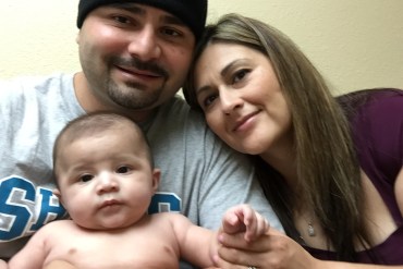 Danny Contreras and his wife, Claudia, wait in a doctor’s office with their son Danny Jr., who needed some shots. Contreras urges other dads to take paid family leave. “Be there for your kids. Be there for your wife,” he tells them. (Courtesy of Danny Contreras)