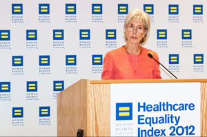 Health and Human Services Secretary Kathleen Sebelius says while the report shines a light on facilities that are giving great service to the LGBT community there is more to be done. At a press conference at Howard University Hospital on Tuesday, Sebelius announced that HHS released a new progress report on LGBT health care in the U.S.