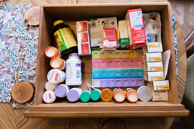 Gerald Chinchar’s medicine is packed in a kitchen drawer for a Sharp HealthCare Transitions program nurse to check. (Heidi de Marco/KHN)