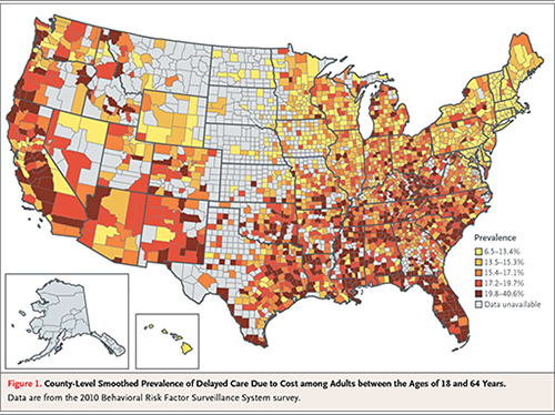 Hidalgo is a county in southern Texas just across the Rio Grande from Mexico. It’s also home to the highest prevalence of U.S. adults – about 40 percent of the population– delaying necessary medical care because of cost, according to data in the March 28 New England Journal of Medicine.