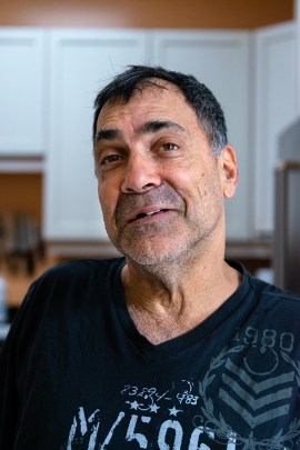 Tuller poses for a photograph without his partial dentures. He says during his period of intense dental care, he hated wearing temporaries and often braved the public with missing front teeth. (Heidi de Marco/KHN)
