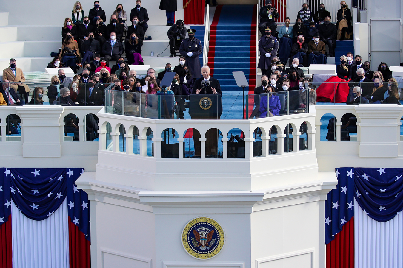 In his inaugural address, given outside despite concerns for his physical security, Biden emphasized unity, the driving theme of his campaign. “My whole soul is in this, bringing America together, uniting our nation,” he said. “And I ask every American to join me in this cause.”