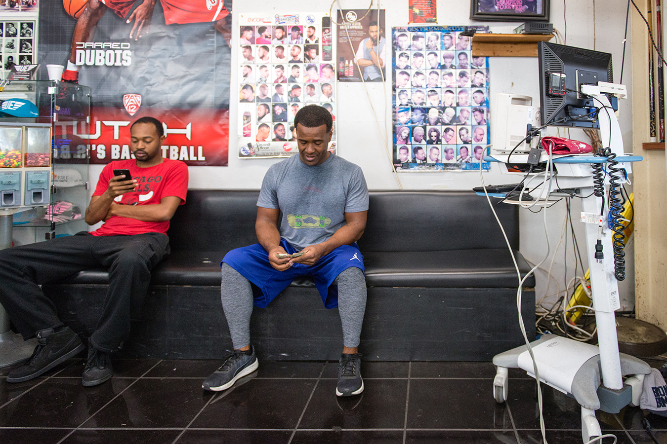 Thomas, the barber at A New You, agreed to participate in the study and help his clients check their blood pressure.