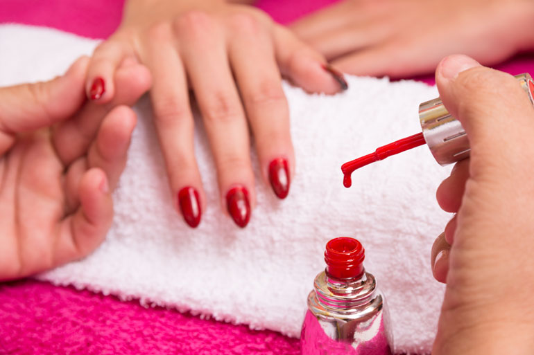 Nail care products such as artificial nails and polishes contain chemicals like formaldehyde, which is a probable carcinogen, and toluene, which has been shown to cause birth defects when inhaled by pregnant women.