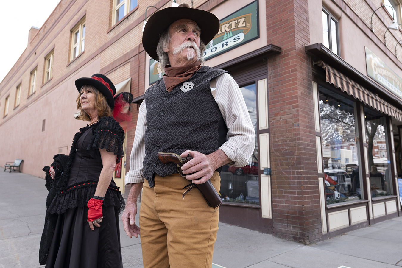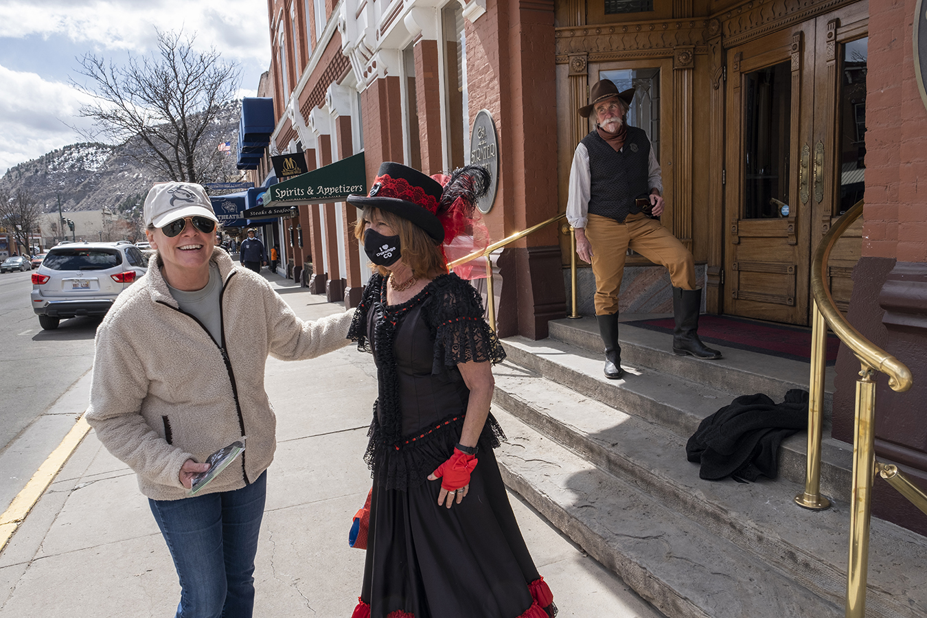 Perez is very familiar with this block, having staged his death several times outside the saloon during summertime gunfight performances. The former cowboy and current actor, stuntman and history buff also pretended to rob the steam train that takes tourists to the former mining town of Silverton. Now, a consortium that includes local businesses and the tourism office has hired him and a few other actors for a very specific task: to get people to obey the city’s mandate to wear their dang masks.