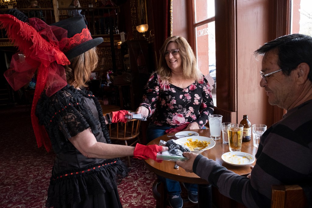 Bartenders were pouring Old-Fashioneds at a bar with a bullet hole straight through the wood. Servers in corsets and fishnet stockings roamed the room, passing an old piano that, twice a week, fills the building with ragtime tunes.