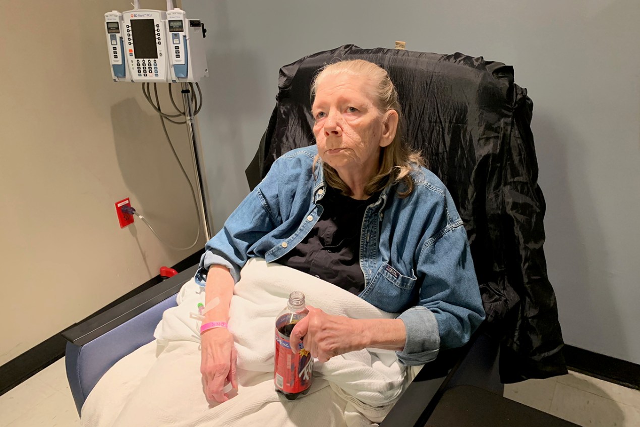 Trudy Hoffman now gets free groceries at her monthly visits to Nashville General Hospital.