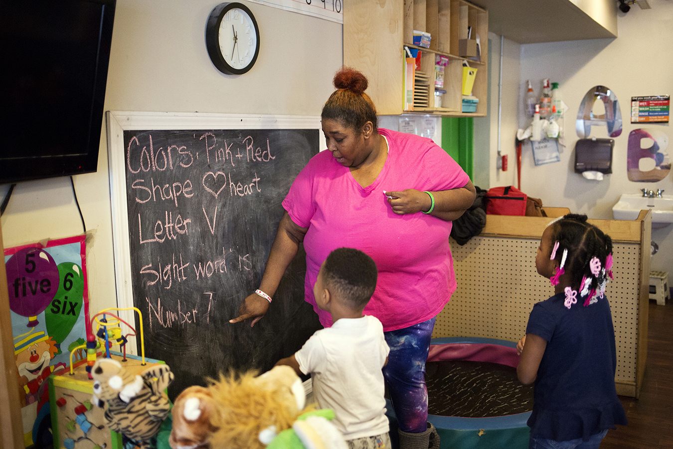 Teachers at the center remind the children of their hand-washing, mealtime and academic routines. They also make sure the kids remember what to do when gunfire erupts nearby. Assistant director Tawanda Brand runs a gunfire safety drill once a month. First, she tells the children to get ready. Then, she shouts: “Dora the Explorer!”