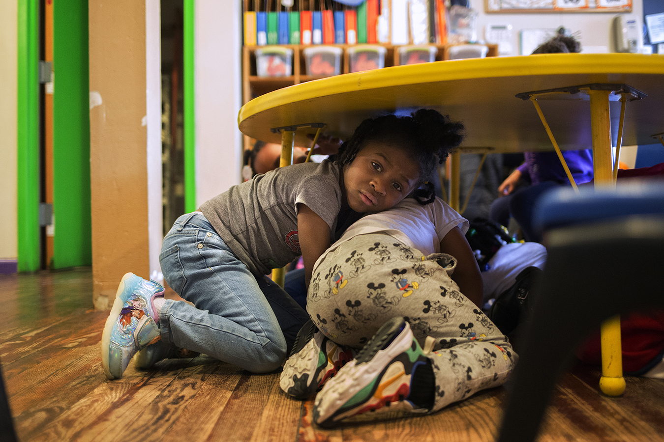 During a drill one morning before the pandemic, most of the children got down. Others walked around, sending Brand on a chase as she tried to corral the group of 3- to 5-year-olds.