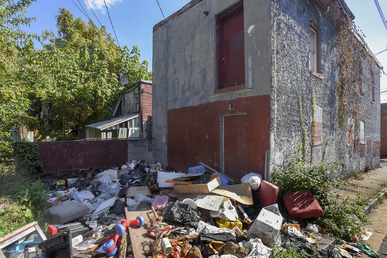 Lemmon Street’s trash piles and vacant homes harbor rodents and insects that can set off asthma flare-ups. (Doug Kapustin for KHN)