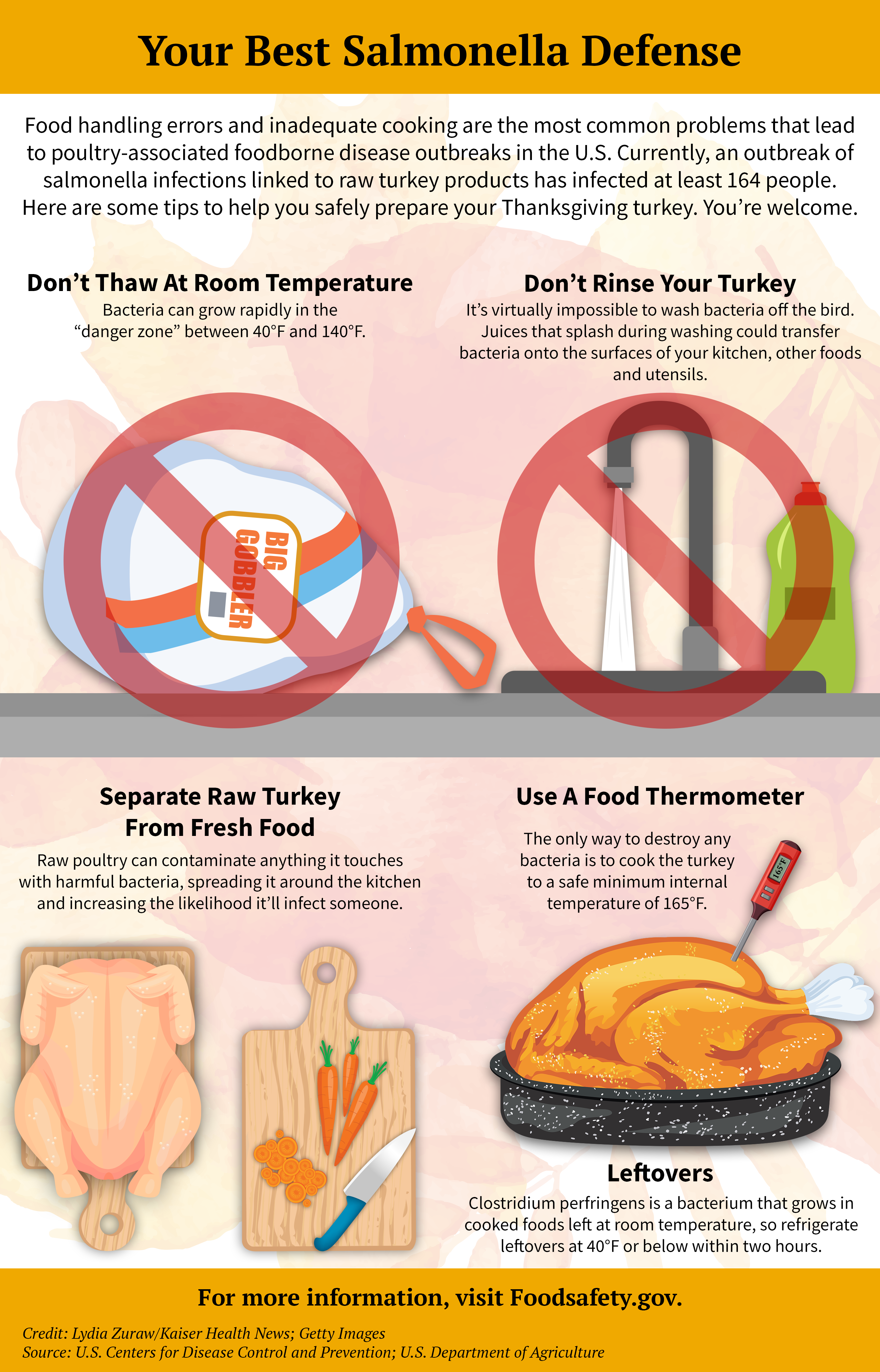 As Americans prepare to cook and consume nearly 50 million turkeys on Thanksgiving Day, an ongoing outbreak of salmonella poisoning linked to the poultry means food safety at home is more critical than ever.