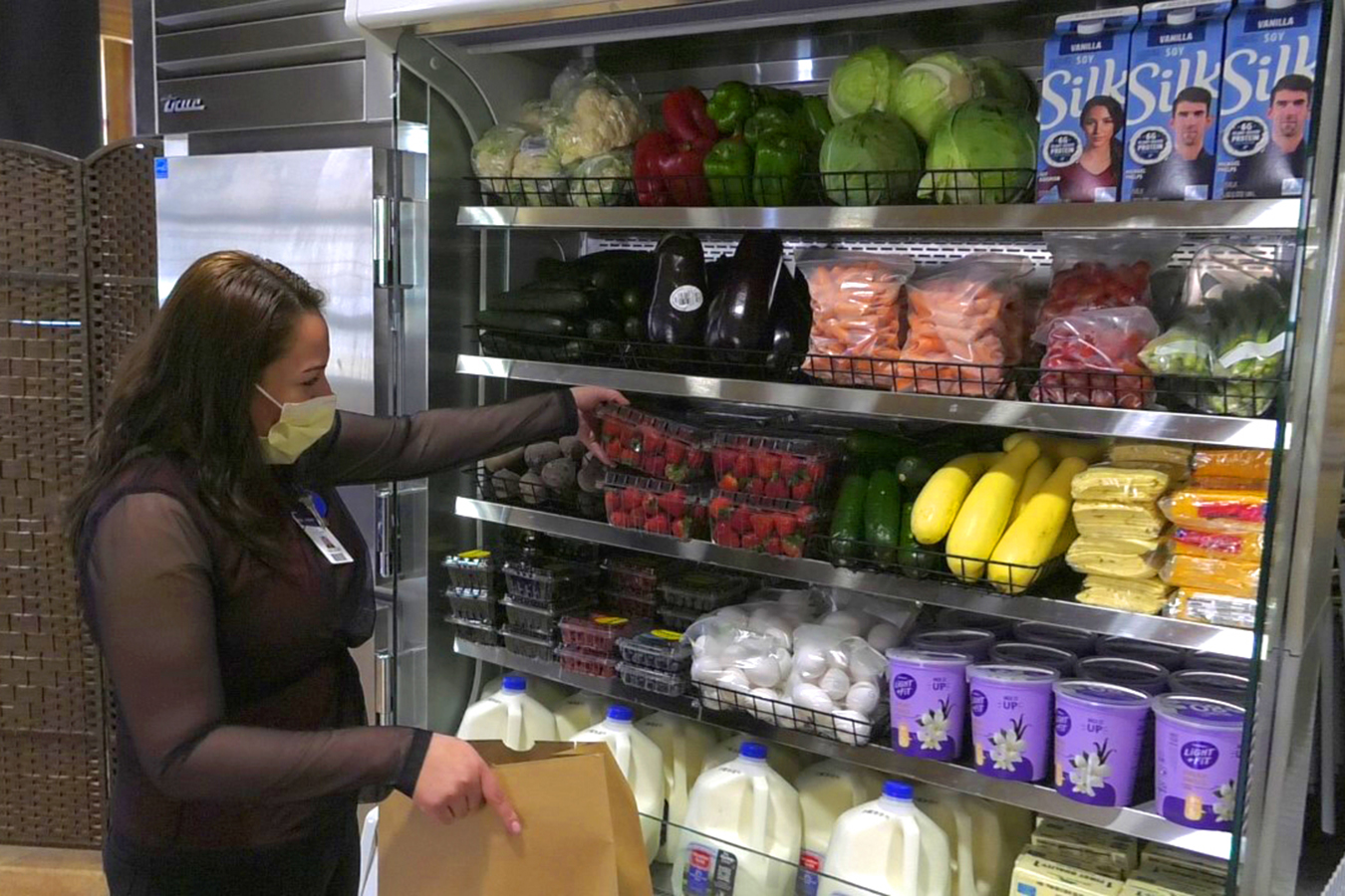 At first, the store offered ready-made pasta, chicken and mashed potatoes, and other meals, including vegetarian options, that caregivers could take home or eat during their shift. Later, grocery basics such as milk and eggs were added for employees to stock their fridge. Today, the Park City Hospital store has expanded to include nonperishable items such as cereal, sugar, oatmeal and pasta, plus a variety of fresh produce options.