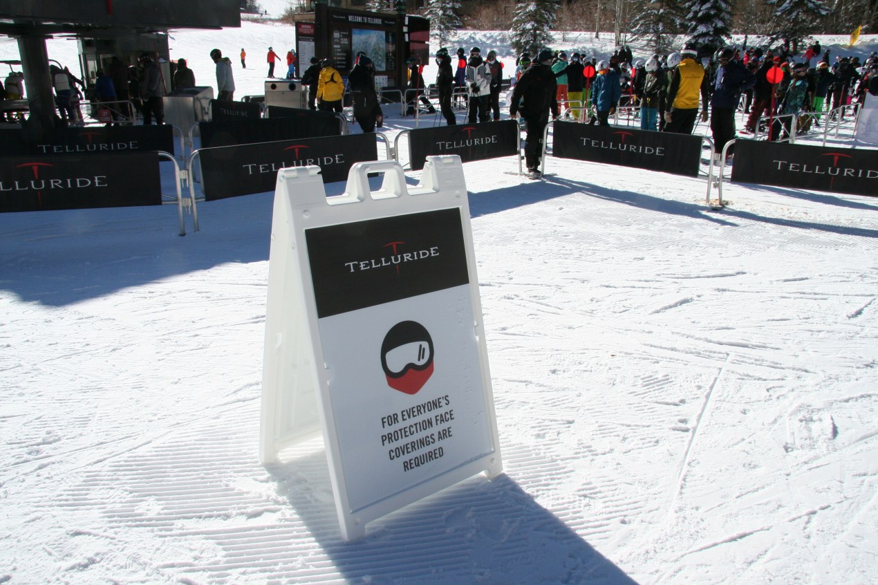 On Nov. 25, with its COVID case numbers skyrocketing and its positivity rate hitting 4.6%, San Miguel County, which includes Telluride, closed its bars and restricted its restaurants to takeout and outdoor dining only. Signs posted throughout the resort remind visitors of the “five commitments of containment” — wear a mask, maintain 6 feet of physical distance, minimize group size, wash hands frequently and, when you feel sick, stay home and get tested.