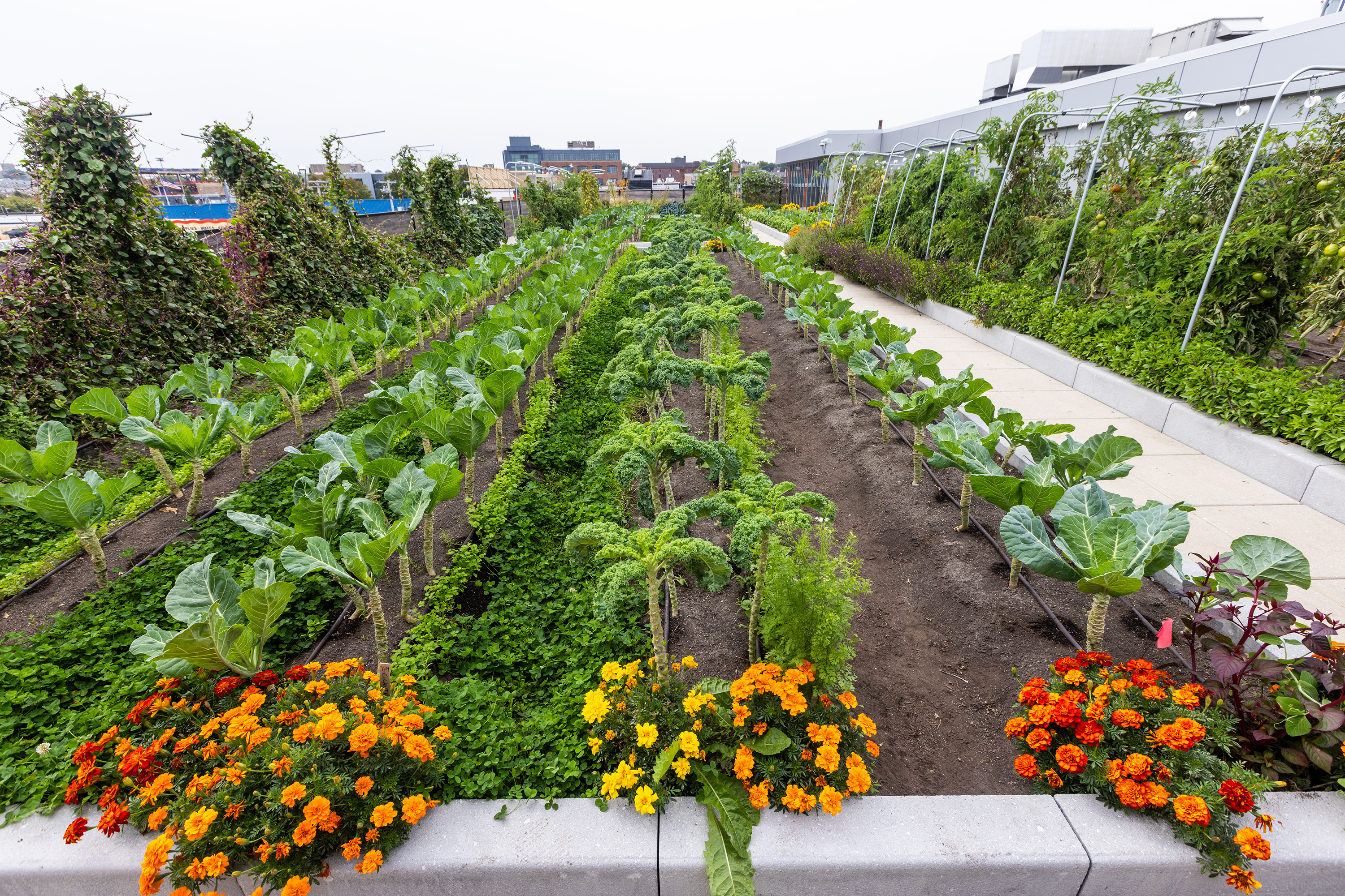 Standing on the roof amid the solar panels, Goldman pointed out a large vegetable garden one floor down.