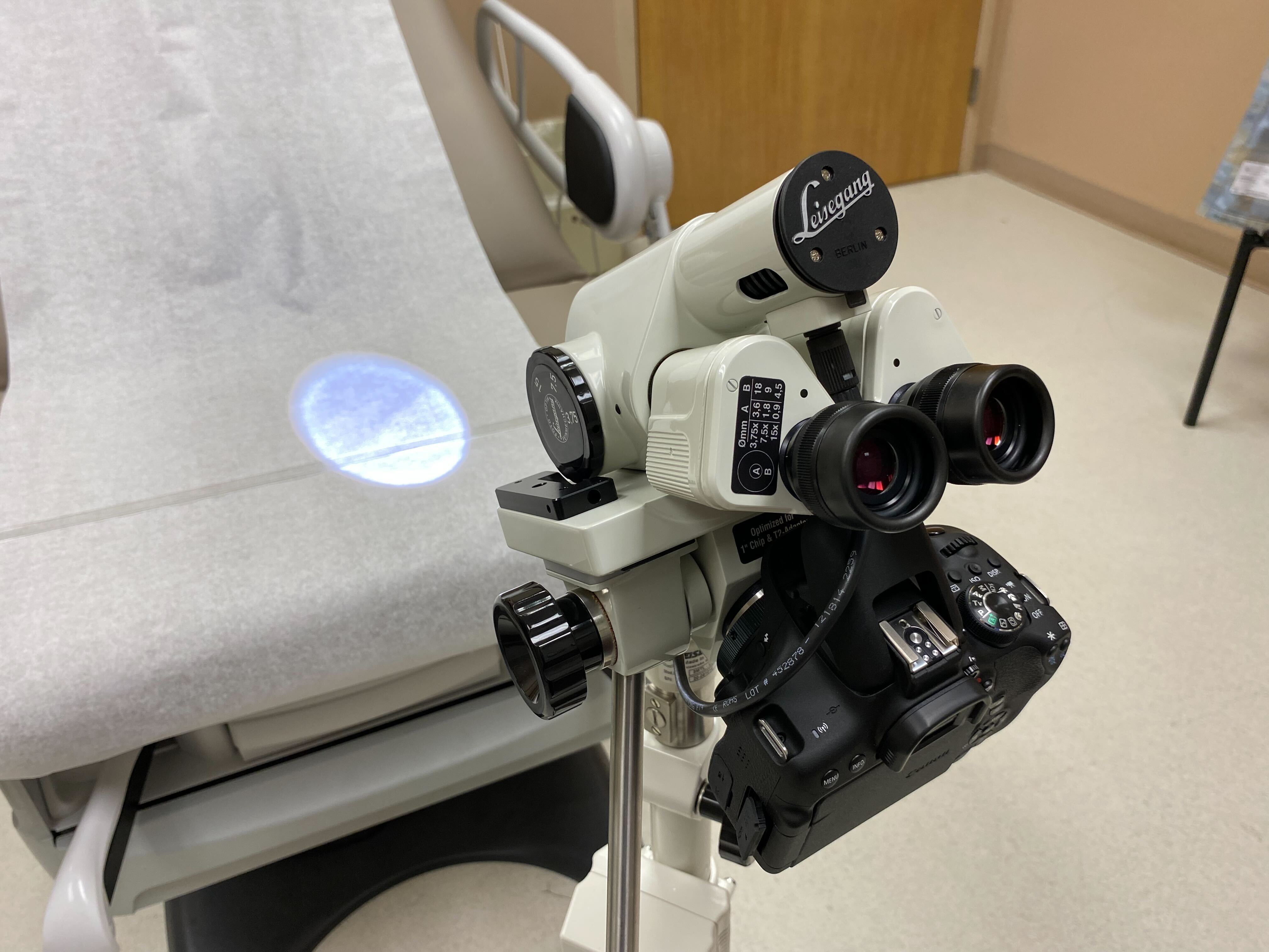 The remote nurse used the video technology to speak with the patient and guide Shelley through each step of a two-hour exam. One of those steps was a colposcopy, in which Shelley used a magnifying device to closely examine the vagina and cervix. The remote nurse saw, in real time, what Shelley could see, with the help of a video camera attached to the machine.