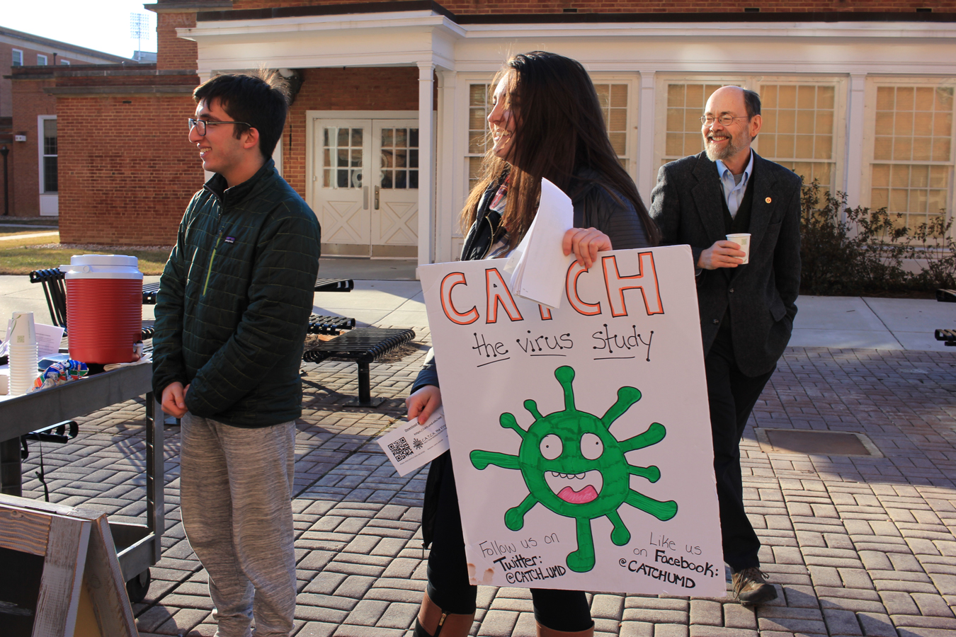 On a blustery January day, Milton was with undergraduate research assistants Louie Gold and Amara Fox trying to get students to sign up for his new study on how the flu — and other viruses — spread. They had vouchers for the school convenience store, free hot chocolate and handmade signs.