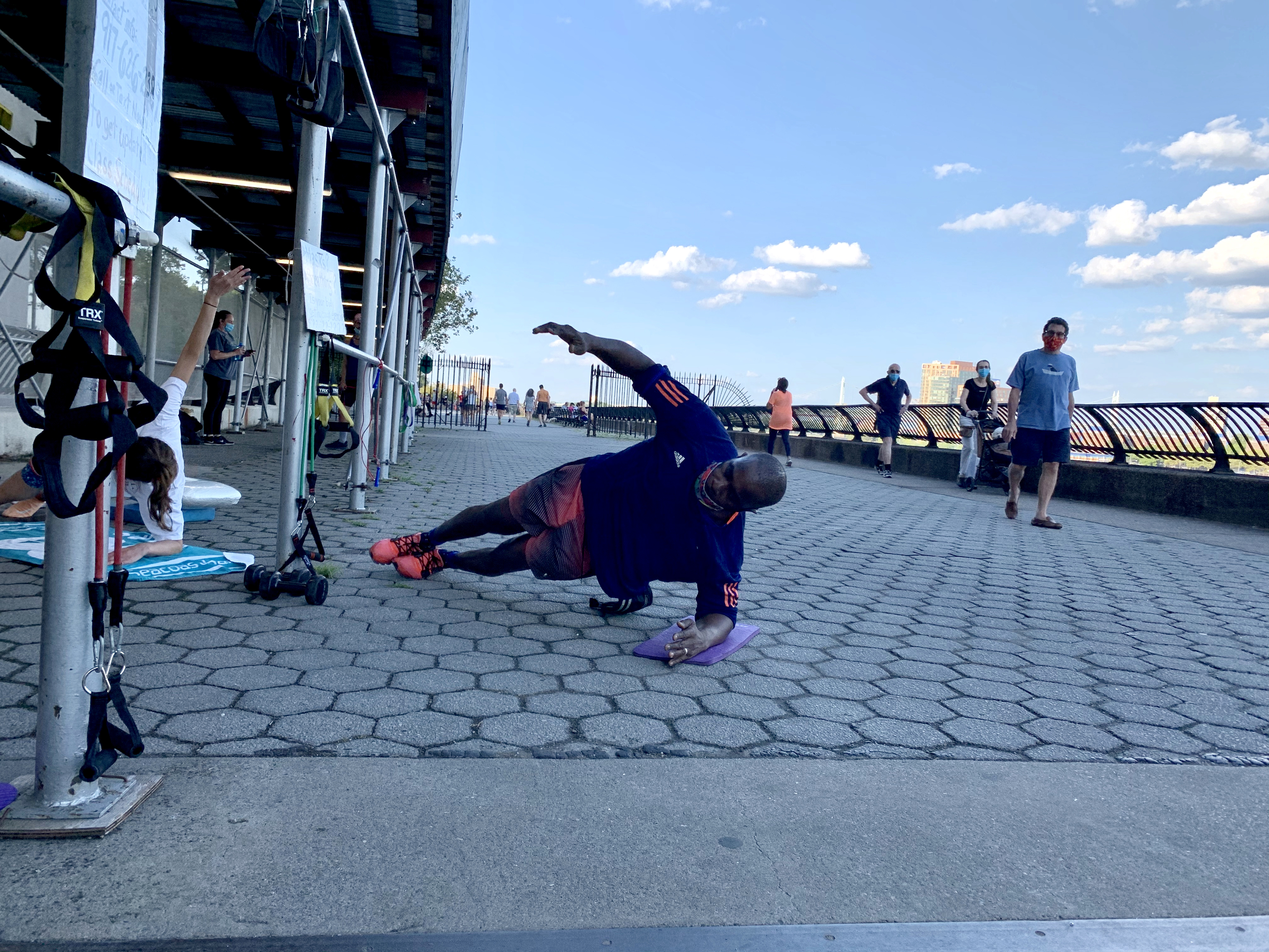 Devin Paul, another trainer, also transitioned his business smoothly to the outdoors. He’d worked with a gym until the quarantine started, and now he’s training his own clients in Carl Schurz and in Jackie Robinson Park in Harlem.