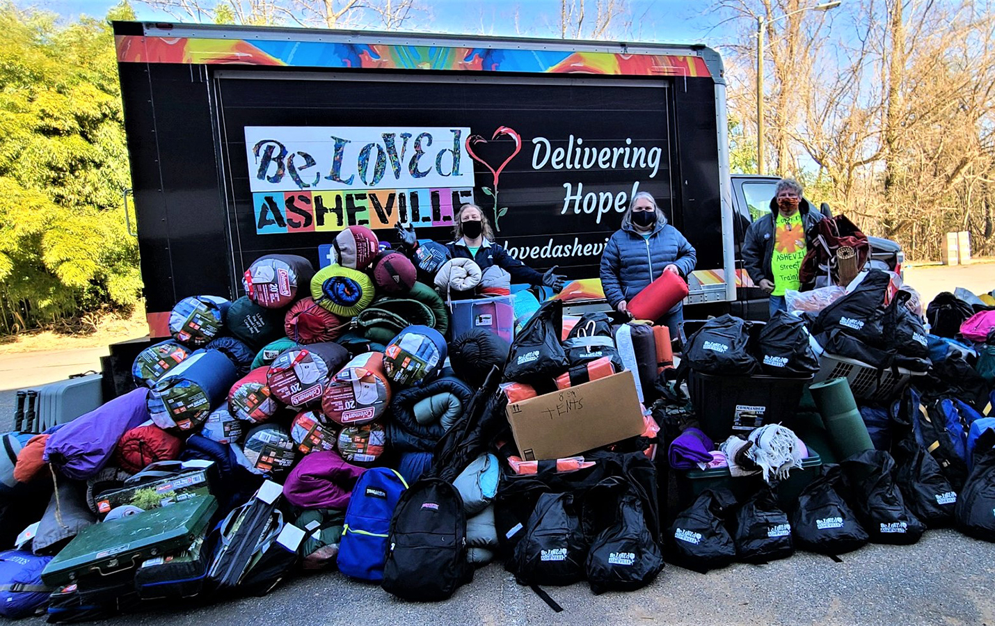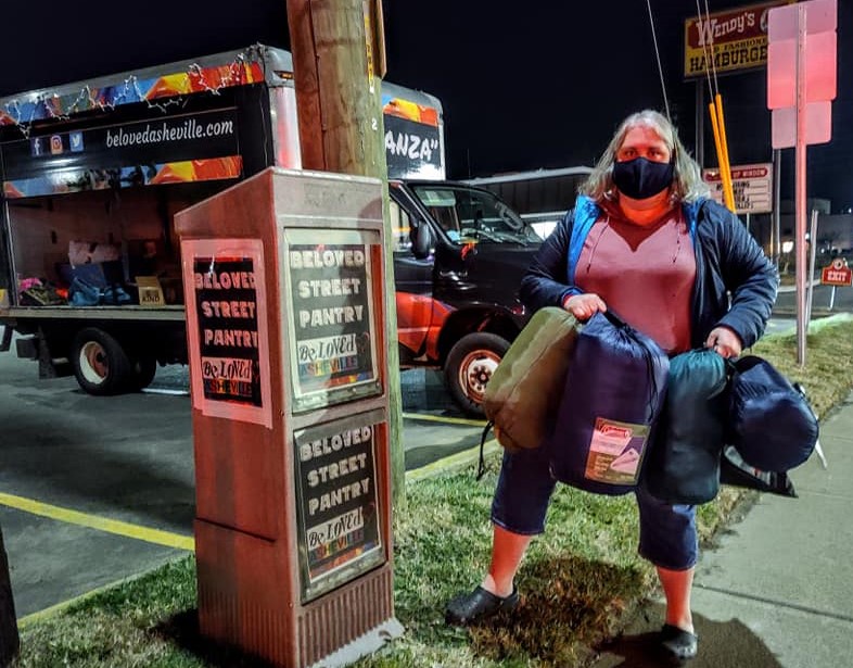 On Mondays and Thursdays, Sigmon and her team travel through downtown Asheville and the rural corners of Buncombe County to hand out lifesaving supplies like insulated tents, sleeping bags, thermal socks, face masks and hand sanitizer to those living outdoors. Now they also pass out flyers about the vaccines and ask people if they’ll pledge to get their shots.