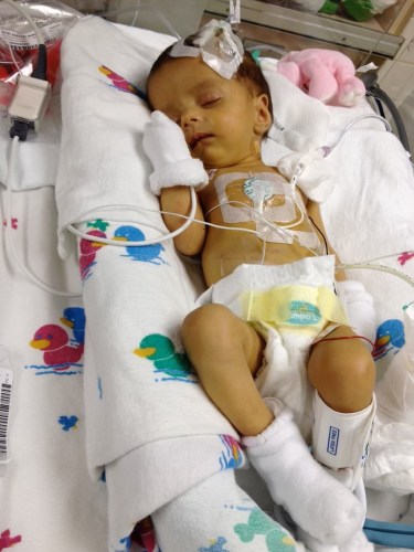 Julia was born in Miami when her parents were attending college on student visas. She had a birth defect called volvulus, a twisted small intestine, and doctors saved her as a baby by removing most of the organ. Never able to eat normally, Julia has survived by getting carefully crafted daily infusions of nutrients through an intravenous port in her chest, Espinosa said.