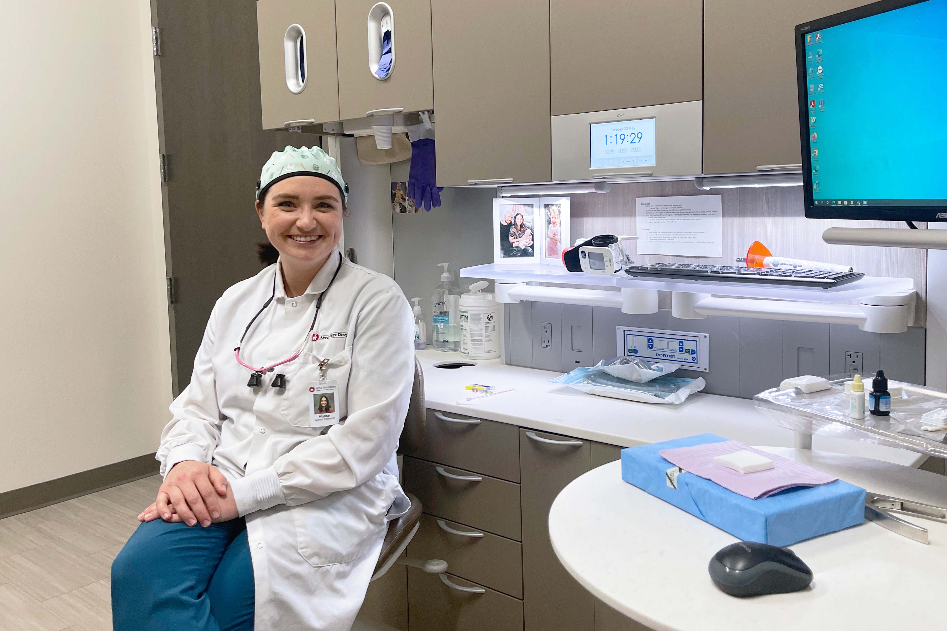 Over the years, Irion has watched as Apple Tree struggled to recruit dentists to serve the rural community. His clinic employs one part-time dentist, a full-time dentist, and two full-time dental therapists. And, like Irion, the other midlevel provider on staff, Alyssa Klugman, is an advanced dental therapist and licensed hygienist.