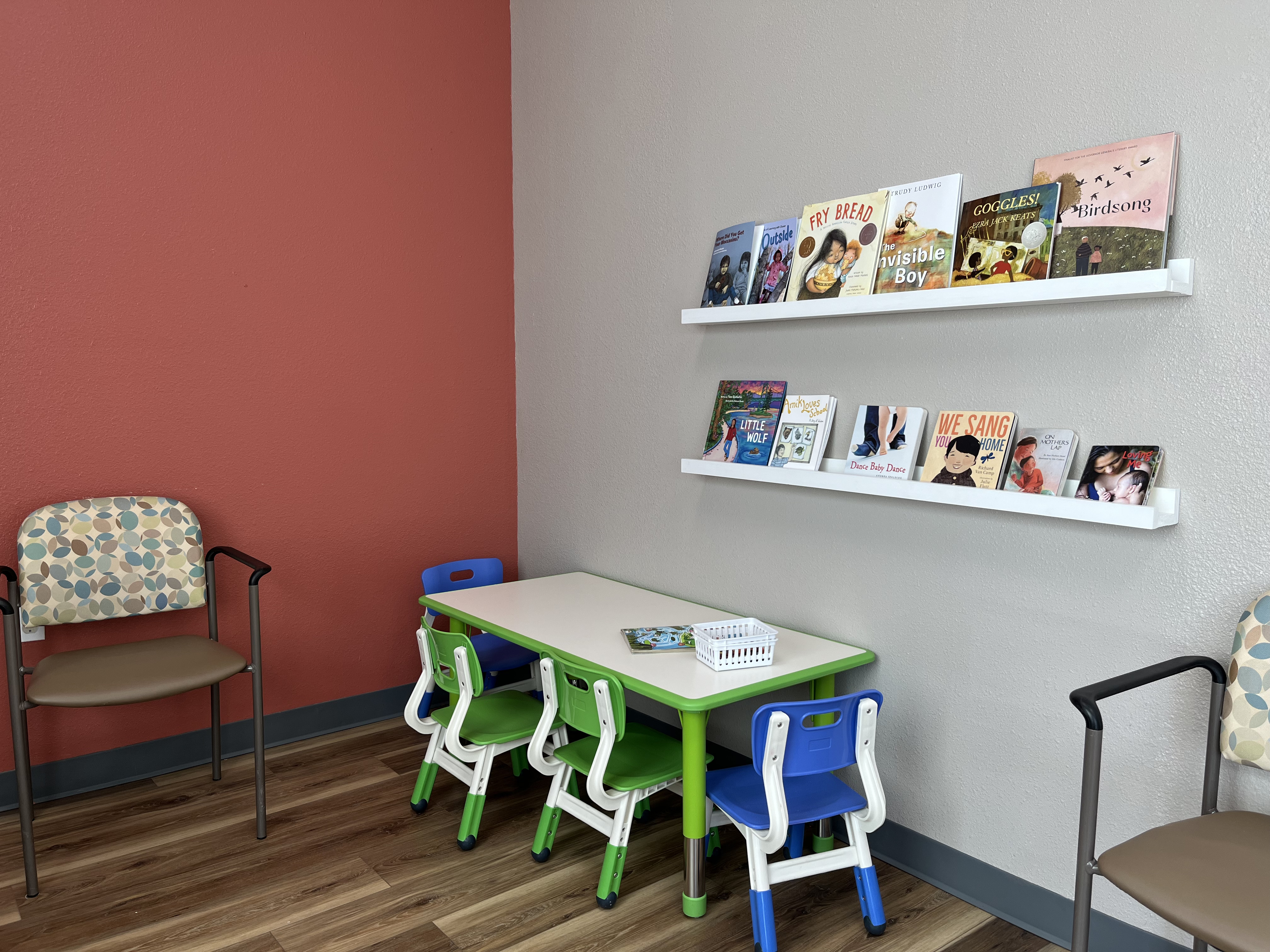 The clinic’s interior reflects that care: Indigenous children’s books like “Where Did You Get Your Moccasins?” and “We Sang You Home” fill the lobby, prints by Zuni artist Mallery Quetawki are going up in exam rooms, and watercolors of nearby Red Rock Park and photographs of Canyon de Chelly hang in the hallways.